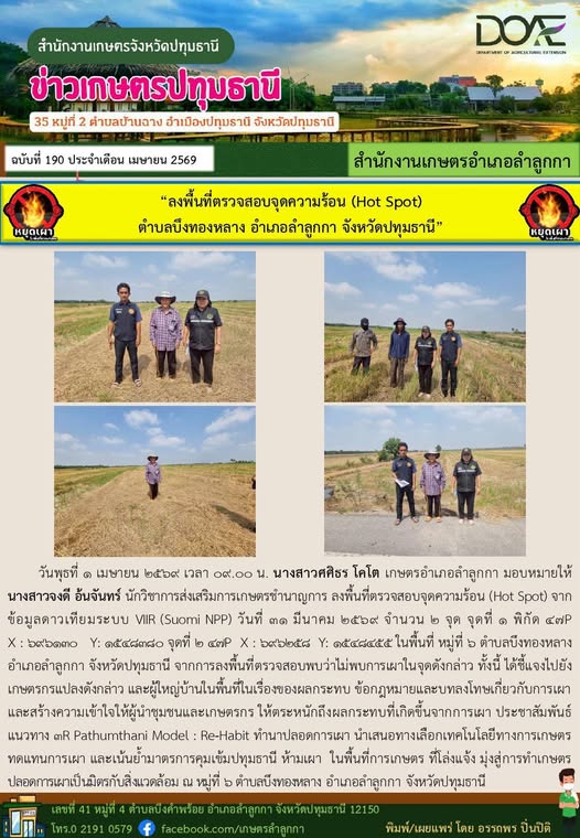 #เกษตรลำลูกกา ลงพื้นที่ตรวจสอบจุดความร้อน
