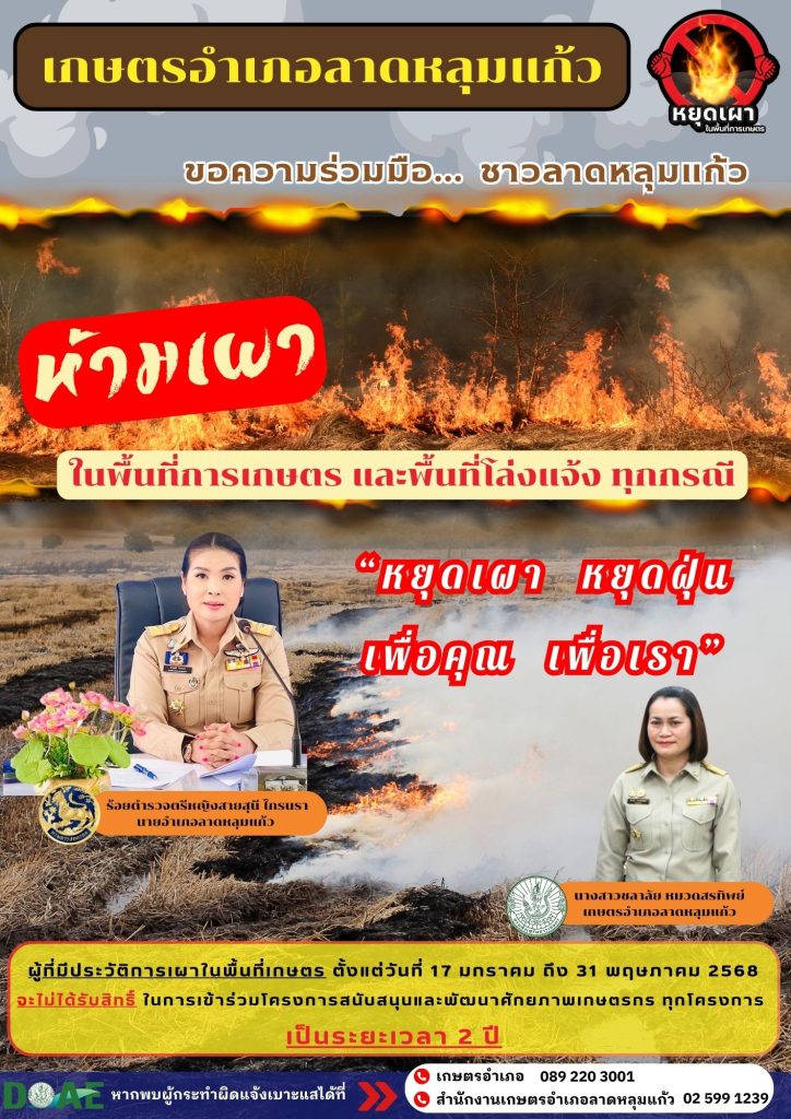 ขอความร่วมมือ… เกษตรกรลาดหลุมเเก้ว ห้ามเผาในพื้นที่การเกษตร เเละพื้นที่โล่งเเจ้ง