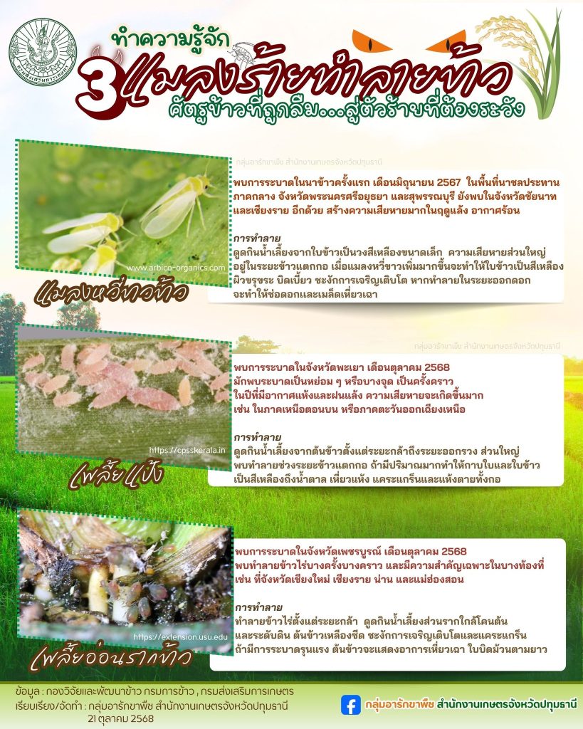 🔎 ขอแจ้งเตือนเกษตรกรและเฝ้าระวังภัยศัตรูพืช ดังนี้